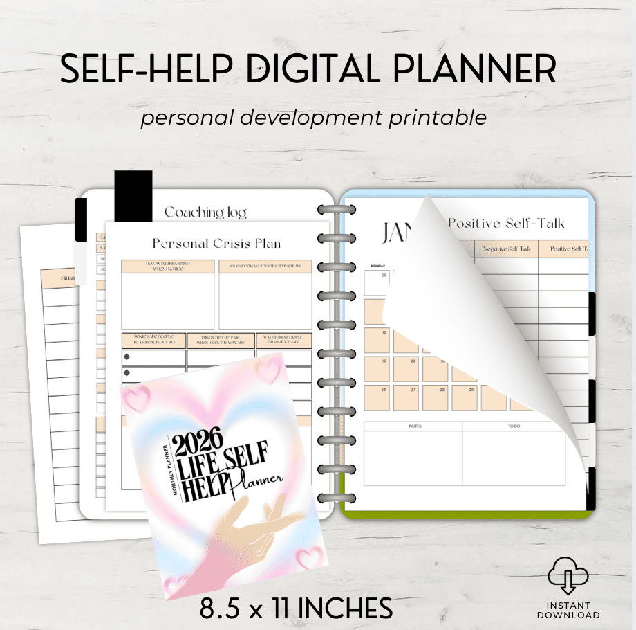 This Self-Help Digital Planner is your personal growth companion, designed to help you set goals, track habits, reflect deeply, and build self-awareness. Whether you’re on a healing journey, improving your mindset, or simply trying to stay grounded, this planner guides you toward emotional balance and purpose.